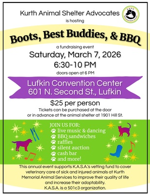 Kurth Animal Shelter Advocates is hosting Boots, Best Buddies, & BBQ to support its vetting fund to care for sick and injured animals.